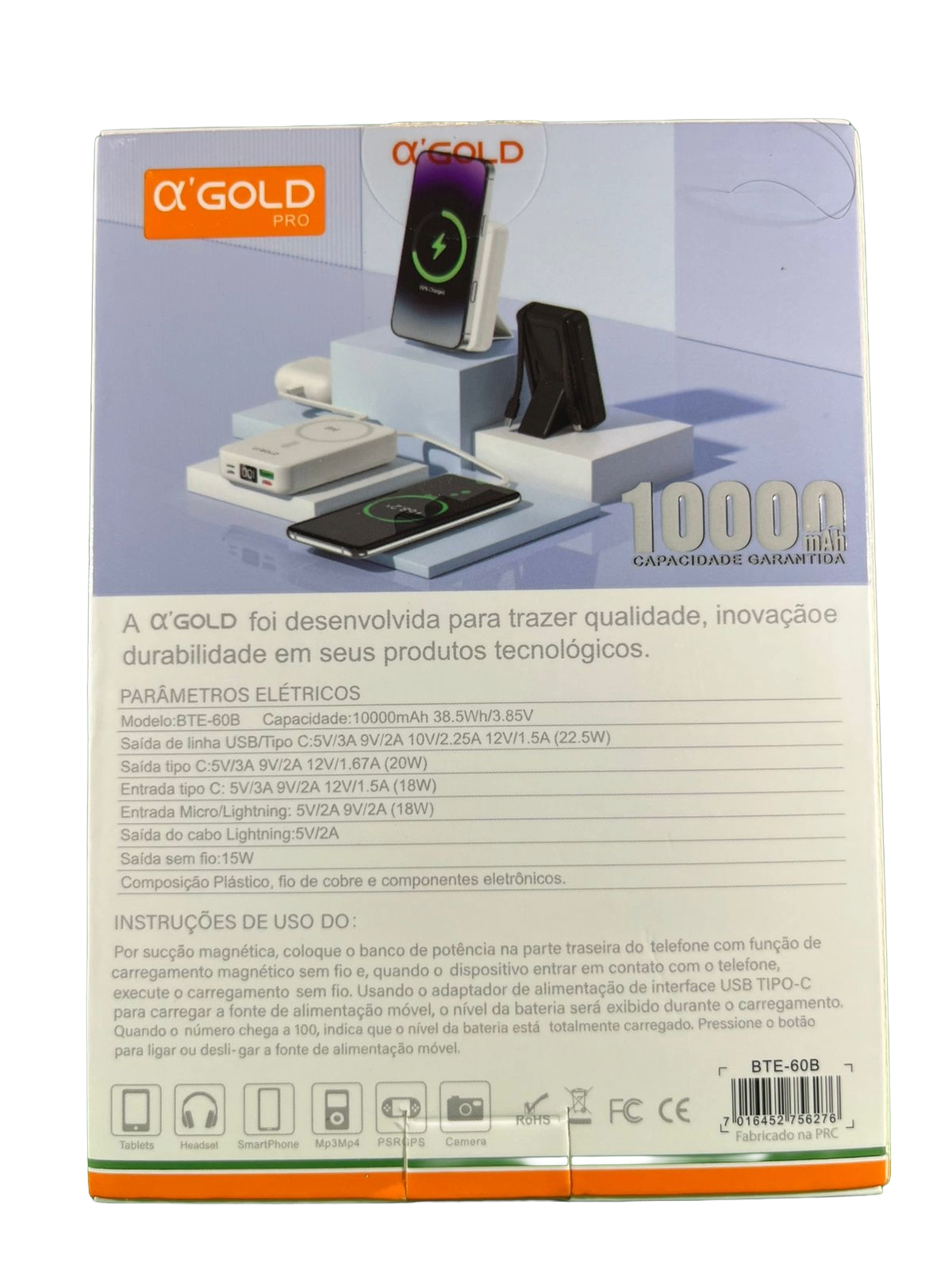Capacidade: 10000mAH/ Carregamento turbo de até 22,5W – Compatível com Quick Charge 3.0 (USB-A) e Power Delivery 20W (USB-C) para recargas ultrarrápidas/ Carregamento sem fio magnético (MagSafe) – Suporte magnético para iPhones com MagSafe e compatibilidade com padrão Qi até 22,5W/ 3 formas de carregamento – USB-C, USB-A e carregamento sem fio, ideal para múltiplos dispositivos/ Design compacto e leve (206g)/ Funciona com iPhones (8 ao 15), Galaxy e qualquer dispositivo com Qi ou entrada USB