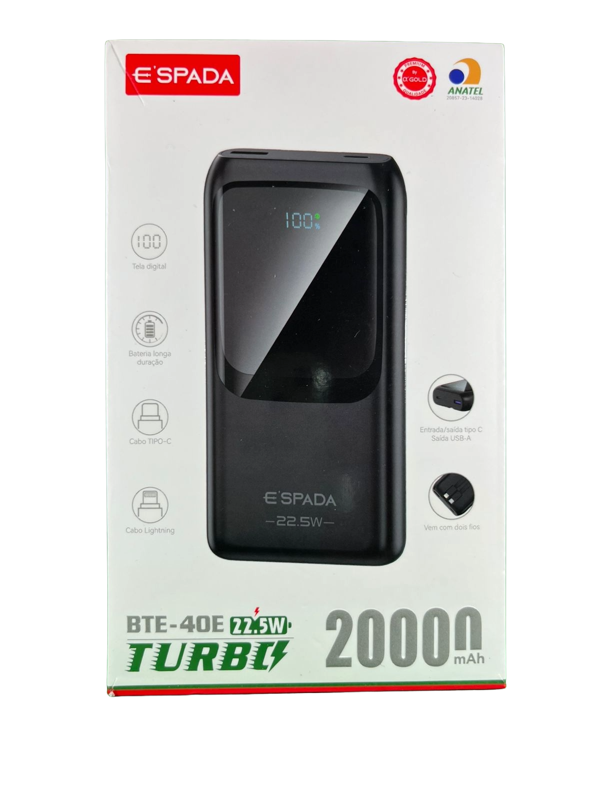 Possui um tipo de conector USB, micro USB, USB tipo-c, lightning./ Inclui cabo./ Vem com dois fios/ bateria longa / tela digital