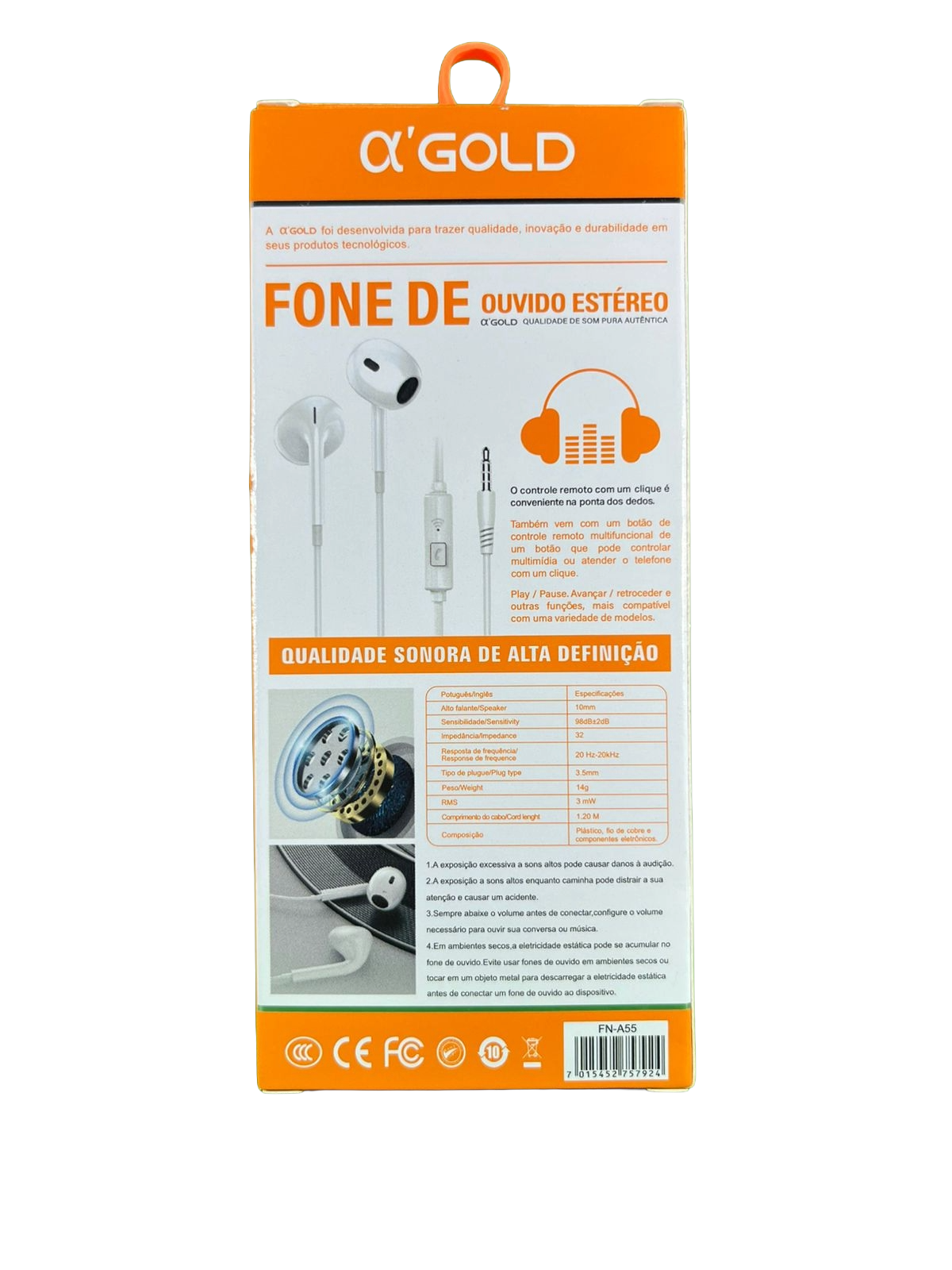 Alto falante – 10mm/ Resposta de frequencia – 20Hz-20kHz / Tipo de plugue – 3.5mm/ Comprimento do cabo – 1.20 M/ Composção – Plastico, fio de cobre e componentes eletrônicos.