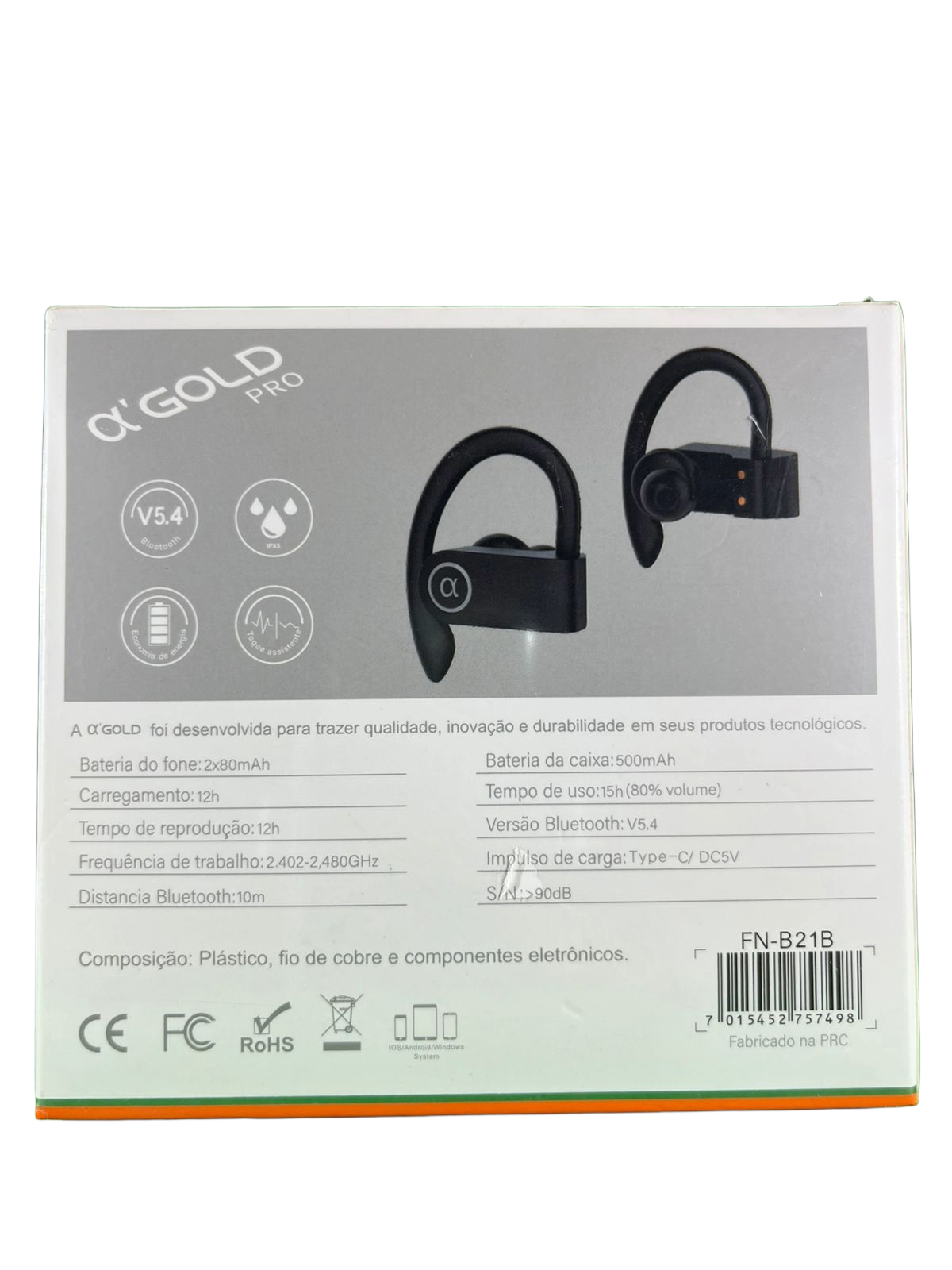 IPX5 a prova de suor – a prova d’agua/ Economia de energia/ Qualidade de som de alta definção/ V5.4 / Com capa protetora